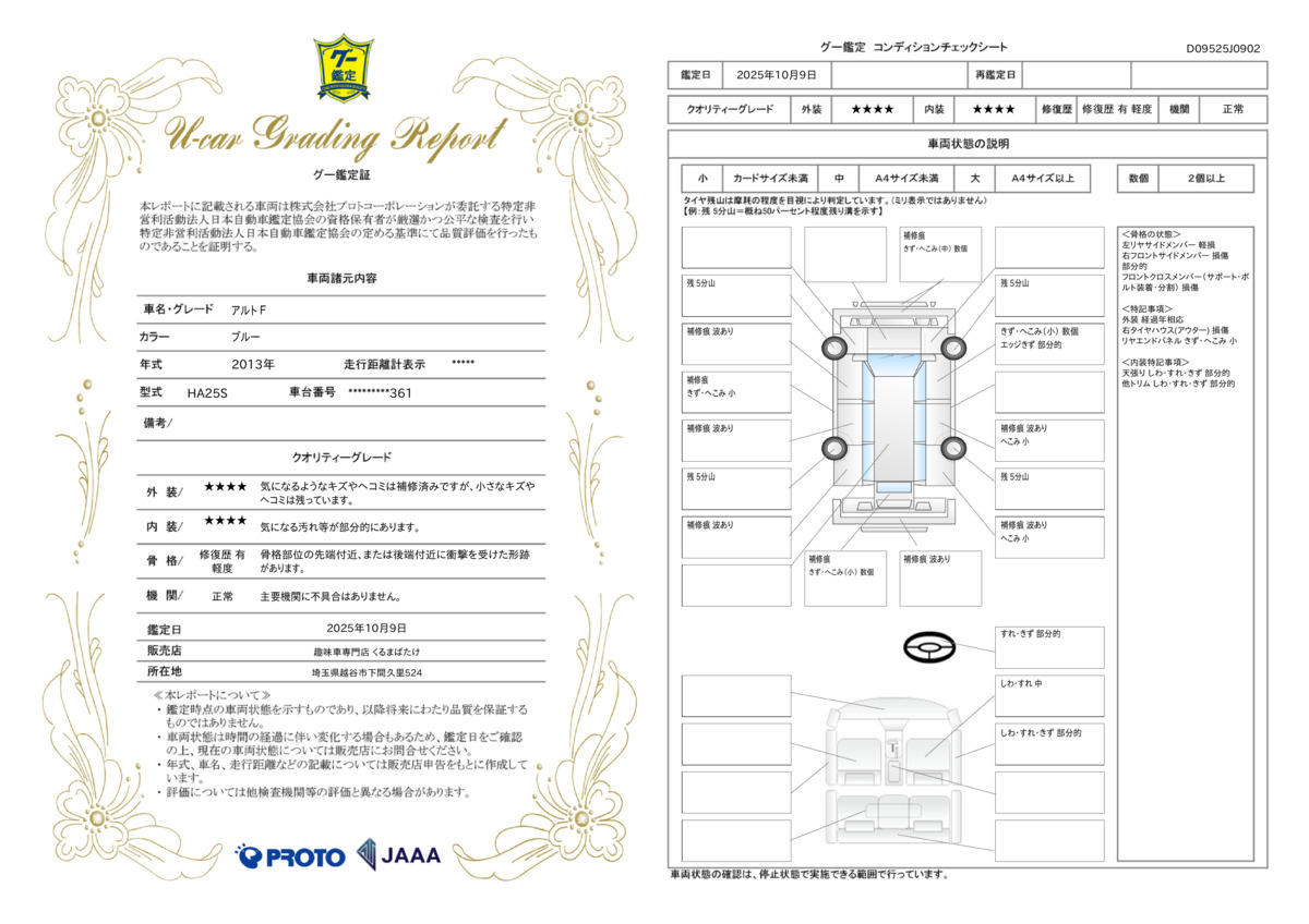 本車両は走行9千kmのFグレードの5MT。清楚で愛らしいアルトのエクステリア。パステル系のエアブルーメタリックが、丸みを帯びたボディーにしっとりとマッチしている。インテリアは明るいベージュとブラックの組み合わせ。しっとりとホールドしてくれるシートの掛け心地や風合いにも上質感が漂う。ベーシックグレードでも毎回触れ合う部分を大切にしているのが伝わる。搭載されるのはK6Aエンジン。DOHC4バルブで54PSのパワーを6500回転で発生する。ショートストロークエンジンで低回転からも扱い易く、高回転まで気持ち良くパワーが伸びる。5MTを駆使して吹け上りの良いNAエンジンのパワーを引き出して、僅か710kgの軽量ボディーを自在に走らせる楽しさ。NAエンジン車ながら余裕ある加速性能で、十分に速いと感じるドライバーは多いはず。クラッチなどの操作系の軽さも相まって、ドライブの歓びは軽自動車の枠を超えて大きい。快適な乗り心地で安心感の高い足まわり。直進安定性・パワーとも、高速巡行にも楽に対応する手応え。当たり前ながら、ロングドライブも快適にこなすスズキの実力車。プリミティブであるが故のドライブの楽しさは、きっと想像を超える・・・アルト